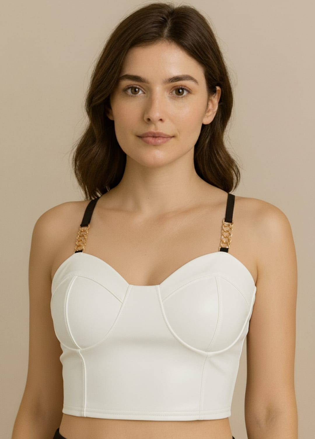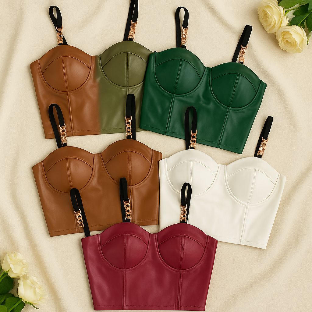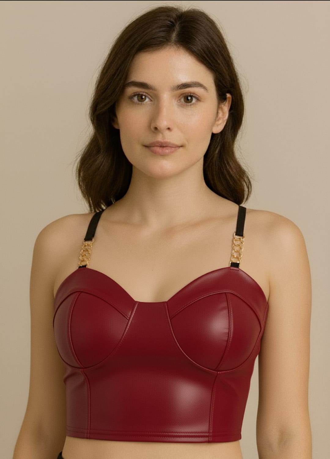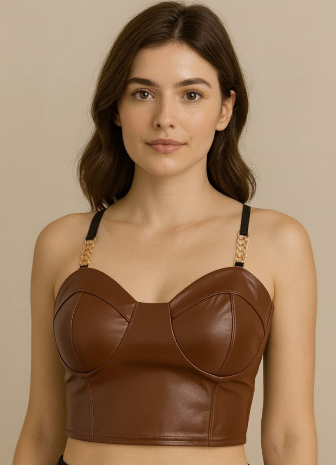 Introducing the ultimate statement piece: our Faux Leather Crop Top with a luxurious feel. This stylish blouse is designed for both comfort and a captivating look.